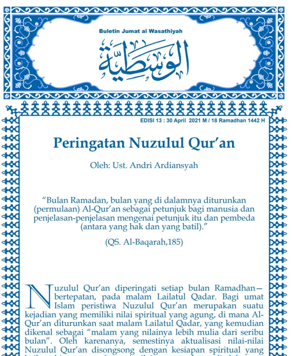 Ust. AndriArdiansyah “Bulan Ramadan, bulan yang di dalamnyaditurunkan (permulaan) Al-Qur’an sebagaipetunjukbagimanusiadanpenjelasan-penjelasanmengenaipetunjukitudanpembeda (antara yang hakdan yang batil).”(QS. Al-Baqarah,185) […]