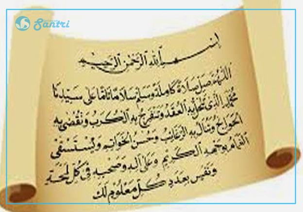 اَللّهُمَّ صَلِّ صَلَاةً كَامِلَةً وَ سَلِّمْ سَلَامًا تَامًّا عَلَى سَيِّدِنَا مُحَمَّدِنِ الَّذِيْ تَنْحَلُّ بِهِ الْعُقَدُ وَ تَنْفَرِجُ بِهِ الْكُرَبُ وَ تُقْضَى بِهِ الْحَوَائِجُ وَ تُنَالُ بِهِ الرَّغَائِبُ وَ حُسْنُ الّخَوَاتِمِ وَ يُسْتَسْقَى الْغَمَامُ بِوَجْهِهِ الْكَرِيْمِ وَ عَلَى أَلِهِ وَصَحْبِهِ فِيْ كُلِّ لَمْحَةٍ وَنَفَسٍ بِعَدَدِ كُلِّ مَعْلُوْمٍ لَكَ .